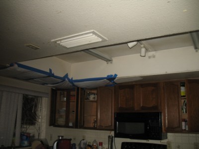 Don’t you think the white garbage bags with blue tape give it a real classy feel?