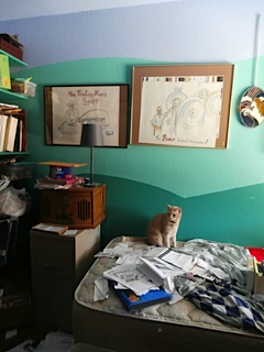 Chaos into organized chaos, gotta love it. I do like the new color though. Seems more peaceful and comforting. Sorta like a cave.