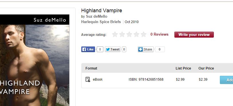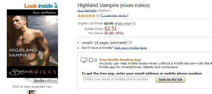On 30 Sept, the price of one of my shorties, Highland Vampire, on Amazon was $2.51. The price at Harlequin’s site was $2.39.