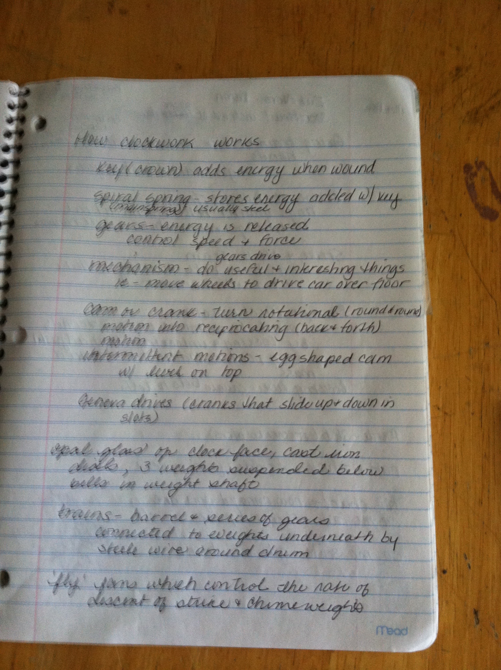 These are my notes on how clockwork toys work and Big Ben. No, I’m not destroying London. My current Work-In-Progress (WIP) is about a haunted clock in France. And it’s a romance.