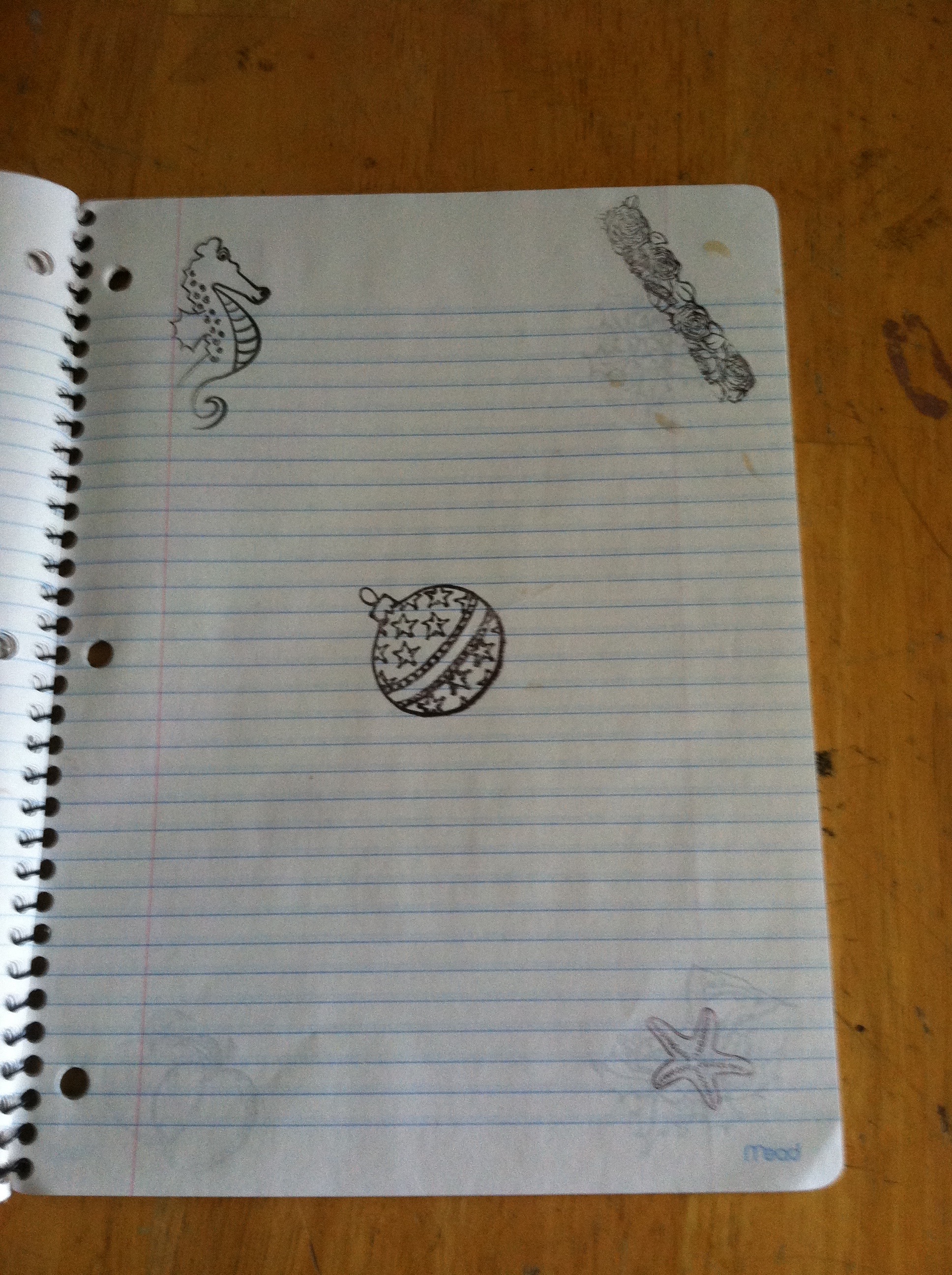 So I will color in the marks with my new markers. The slim white black ink pen will be stowed in my pencil box and I’ll use the last of my gel pens to bring more color to the pages. Note to self: buy more colored gel pens during the back to school sales!