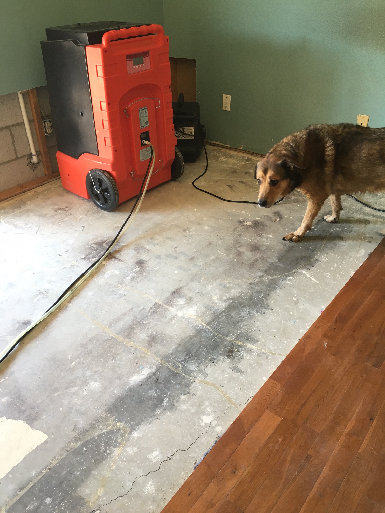 So I did. And they sent out a remediation specialist who ripped out half our bedroom floor, sprayed to inhibit any mold, cut out more of the saturated drywall/insulation, then set up these giant blowers and dehumidifiers.