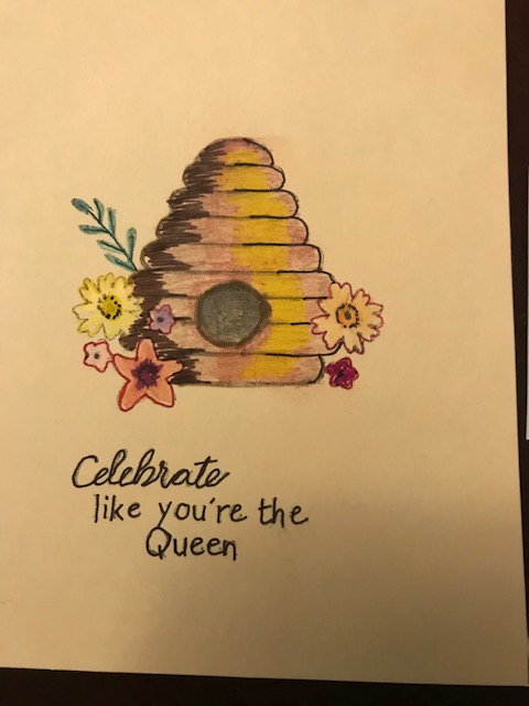 The bees will be cut out, a dashed line will be stamped on the card marking their flight path and golden honeycombs will be added.