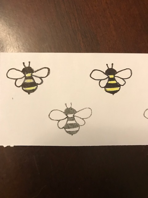 Naturally, I knew when I saw stuff with bees, I wanted to make a few cards featuring them. This is how far I am in the design that I stole from someone who used a kit I bought.