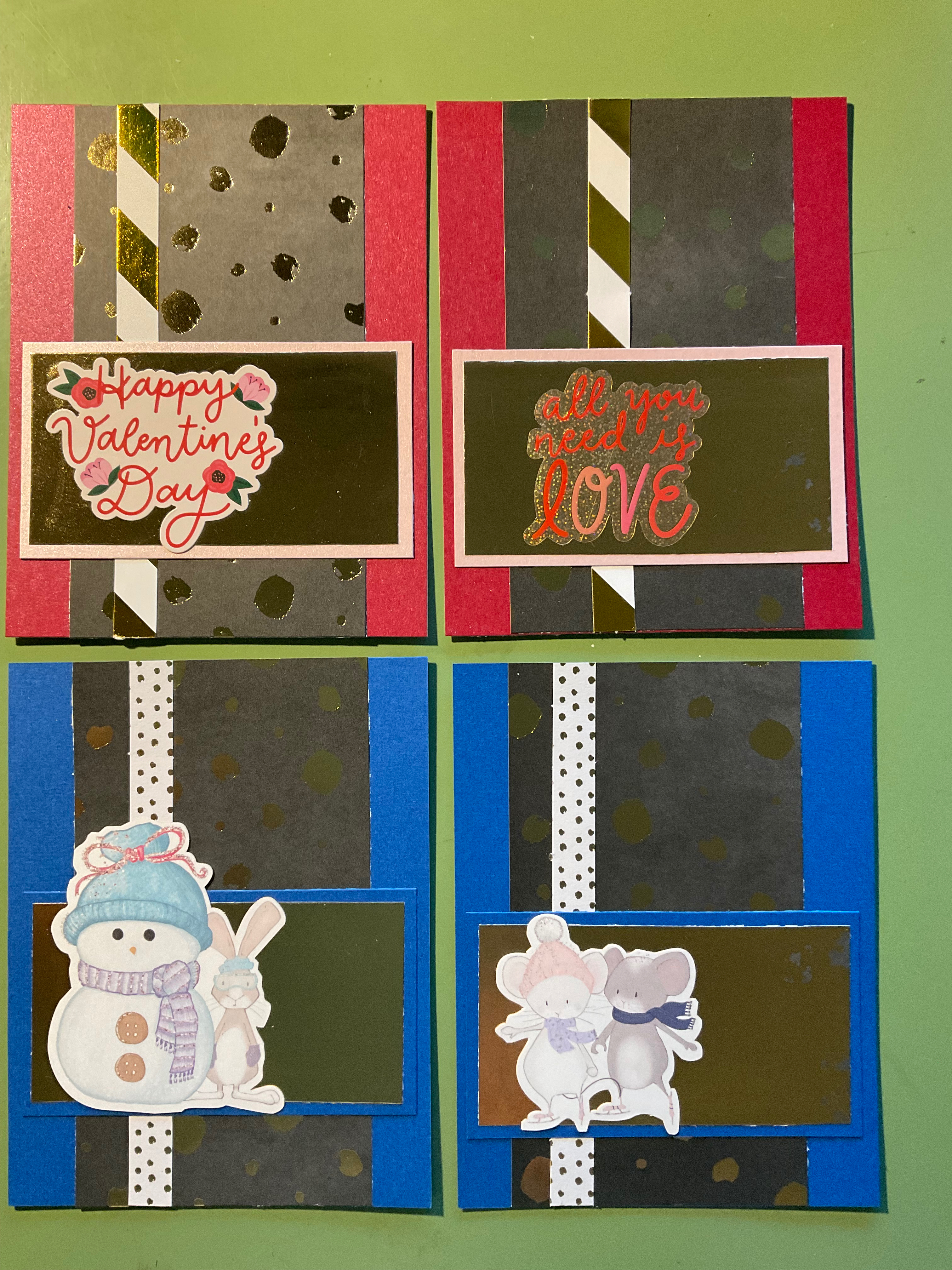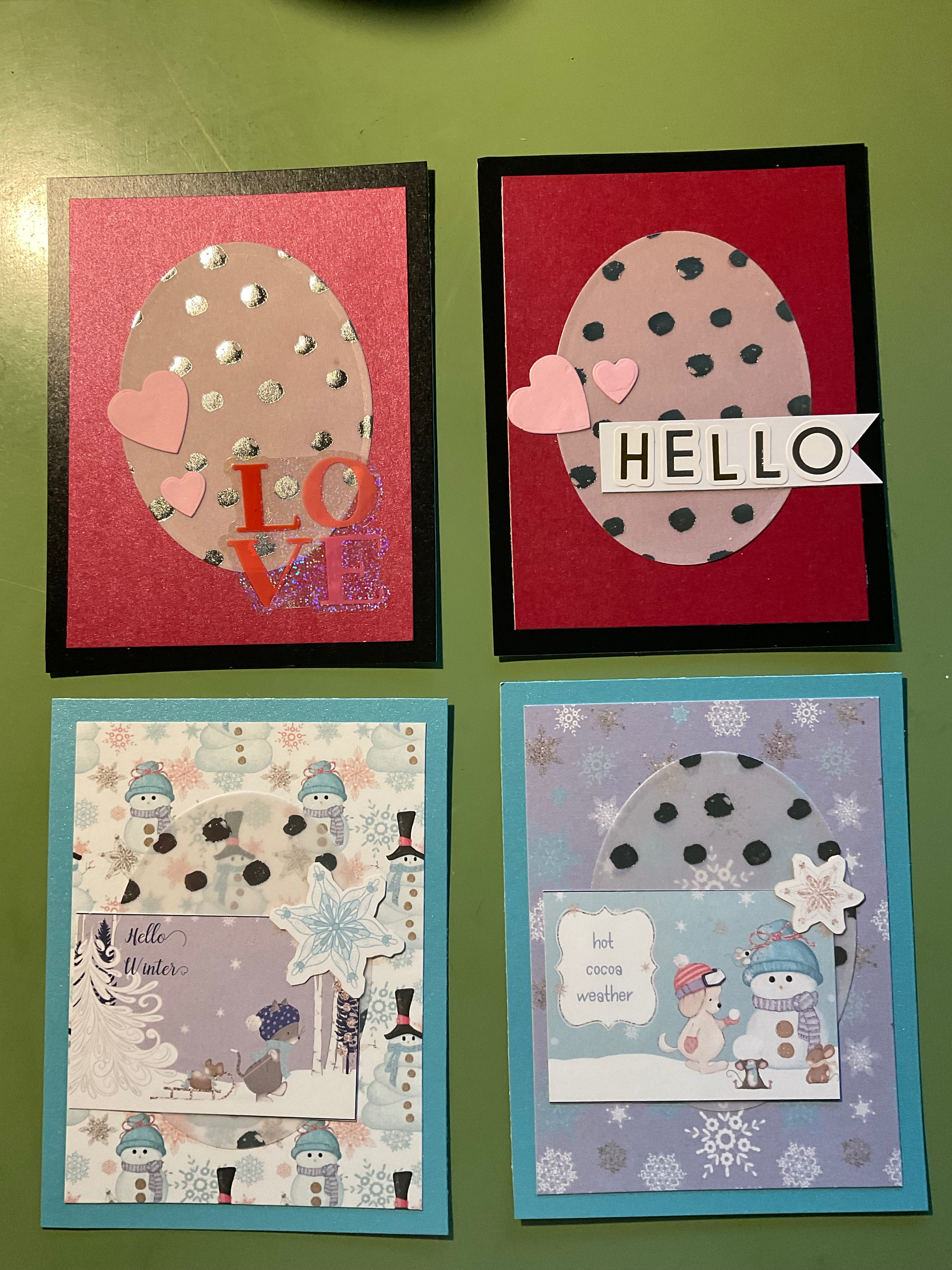 I’ll admit I’m still not good at card designing. Thankfully, there are bunches of folks online who are willing to share their skills. These folks kindly place their layouts online for all to use. I found two of these designs to make general winter cards and Valentine’s Day cards.